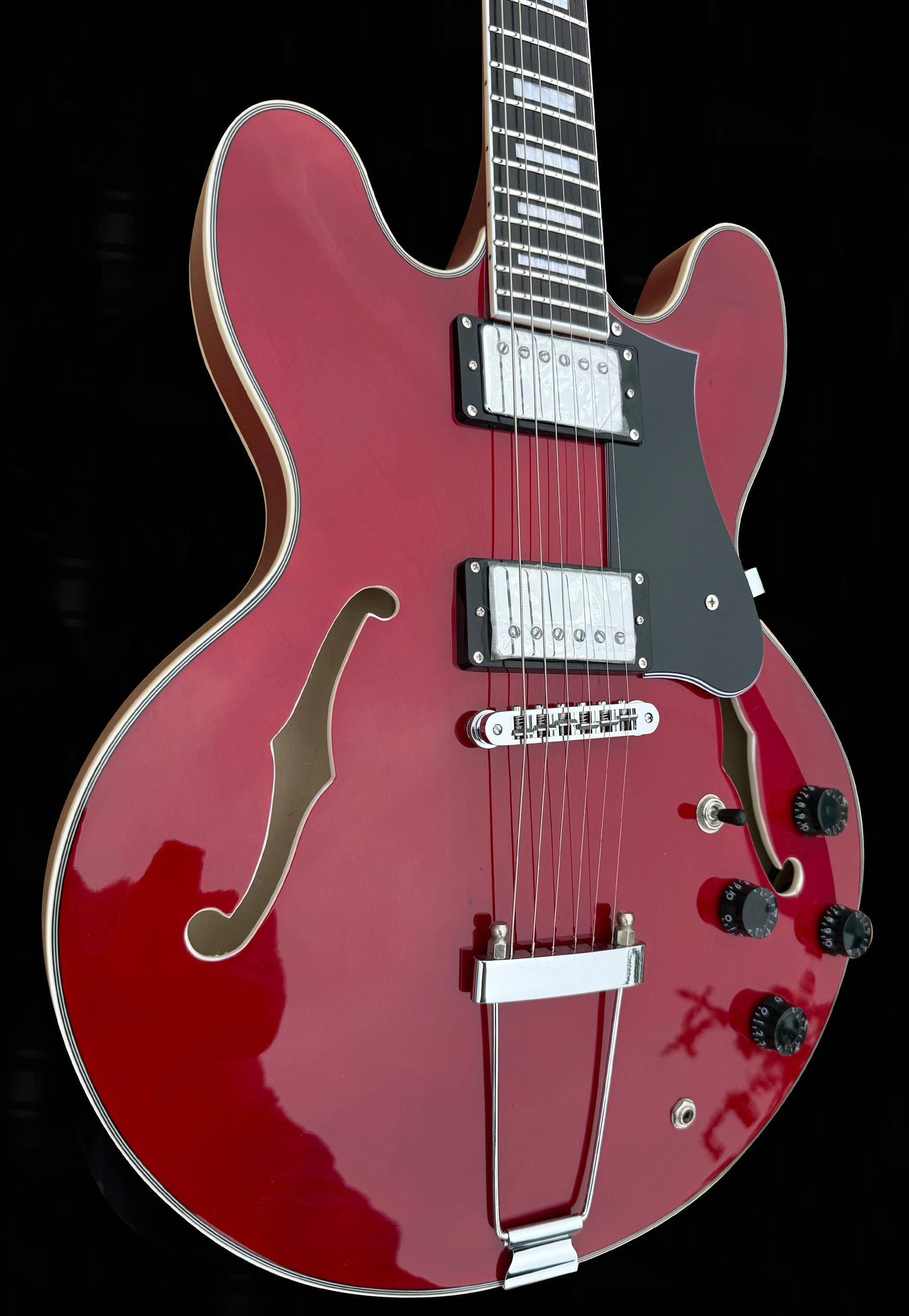 The Firefly semi-hollow body guitar with a beautiful color has Twin humbuckers ,2 Volume& 2 Tone, , Set-In neck,Separate addjustable bridge and tailpiece.